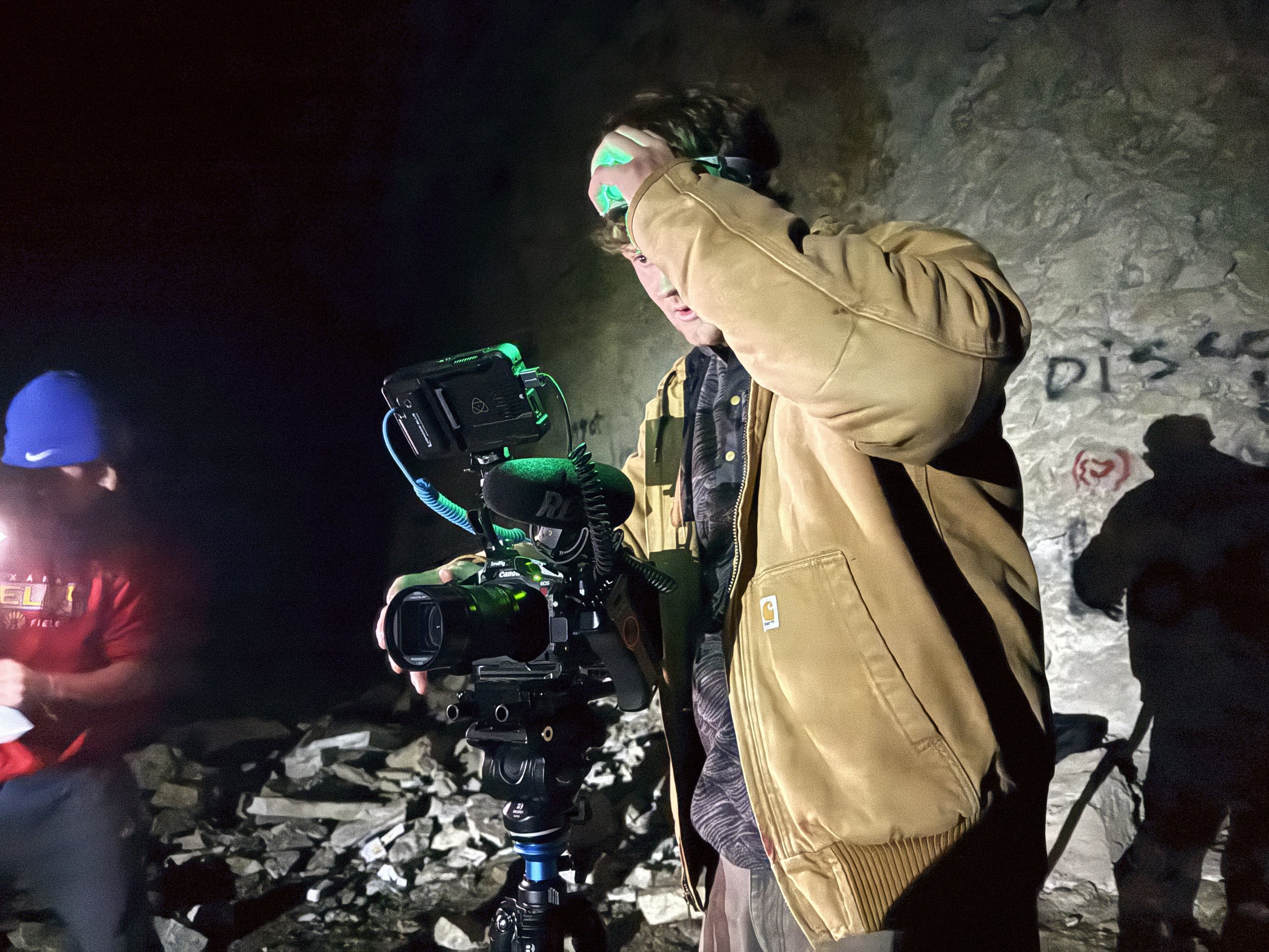 The camera was shot mostly handheld with anamorphic lenses to gie us the flare from the headlamps I was looking for. This made it very difficult to keep focus in such a dark environment. My favorite part from the project is the sound design.